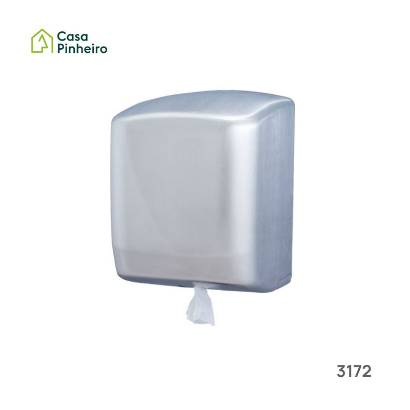 Dispensador de rolos de papel mecha, fabricado em aço inox satinado, de evelada qualidade e resistência.