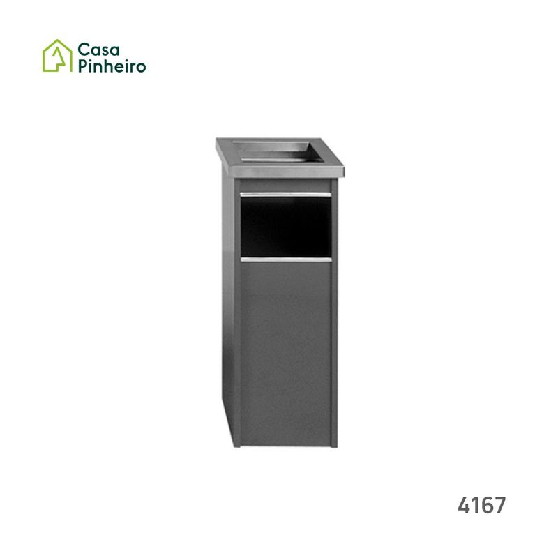 Contém uma abertura forntal para a papeleira de 15 litros, com proteção anti-corte em chapa de aço em tom cromado.