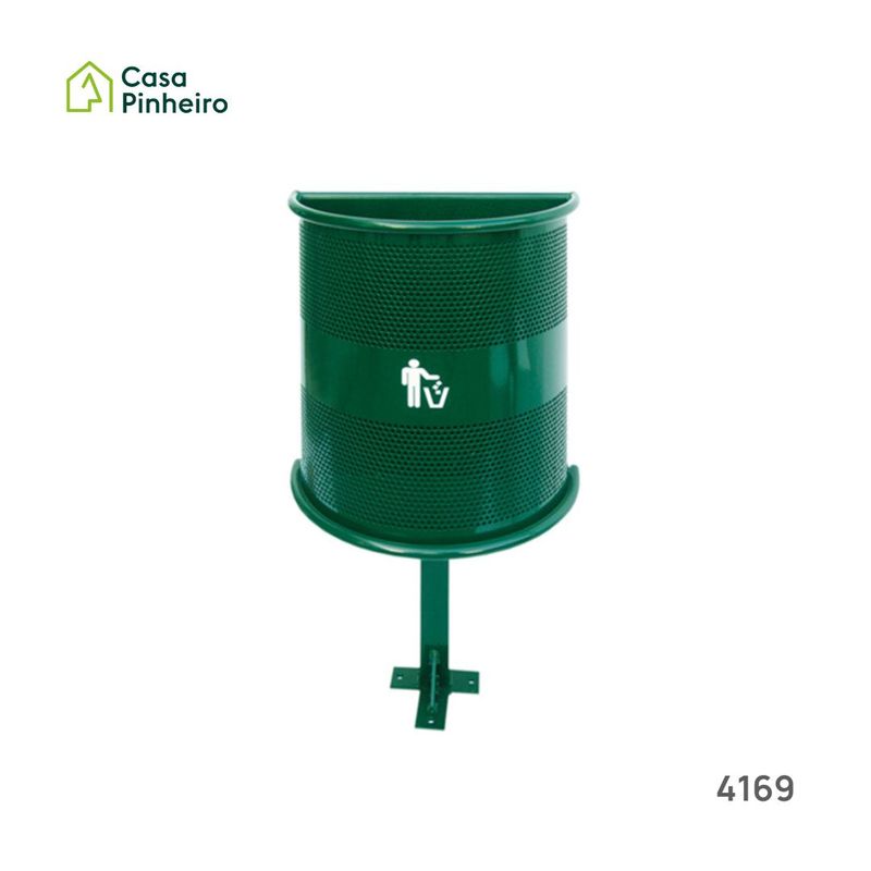Papeleira de jardim em meia-lua totalmente construído em chapa aço perfurada de 0.8mm de espessura com tratamento de zincagem e pintura epóxi a qualquer cor, aro superior e inferior em tubo de aço redondo 19 x 1.5mm com quatro pontos de fixação á parede.