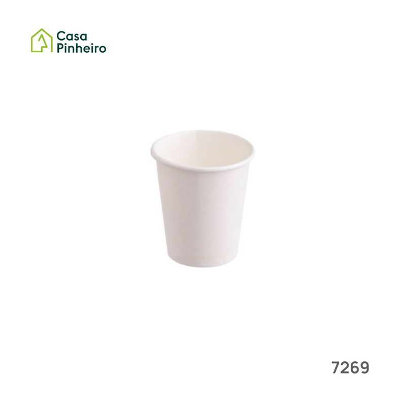 Copos de cartão de cor branca, com capacidade para 88 mililitros.